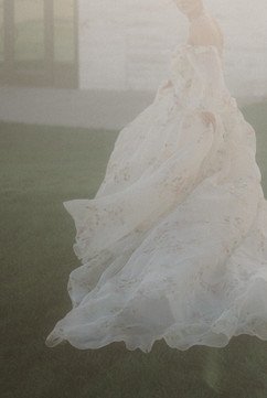 We’re talking serpentine dinner tables (because straight lines are boring), a Monique Lhuillier gown that floats like it was personally blessed by the wedding gods, and florals from Agile Goat Flower Farm that move, flow, and feel like they grew straight out of the land. The floral patterning is organic, romantic, and absolutely off the charts. Nothing stiff. Nothing forced. Just beauty doing its thing.